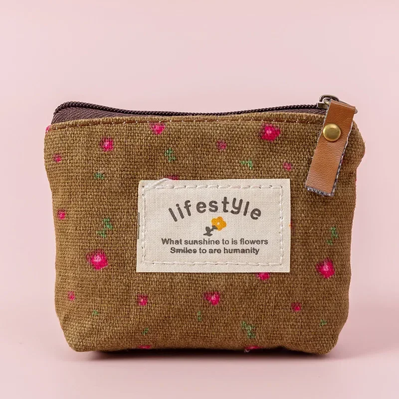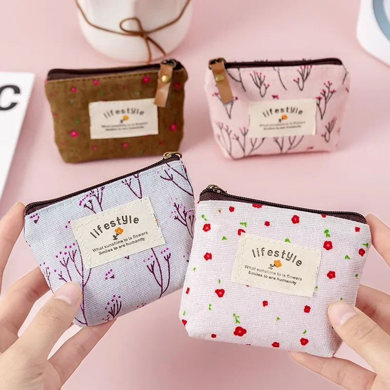 Fashion Flower Makeup Bag Coin Purses Small Fresh Canvas Coin Wallet Lady Girls Earphone Coin Key Money Storage Cosmetic Bag